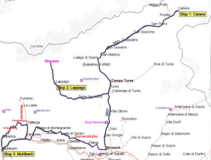 Gut gestärkt gehts runter nach Bruneck und rechts ab auf die Sonnenstraße. Von da