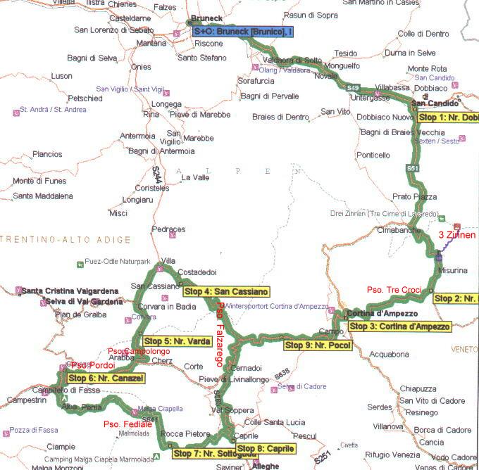 den Passo Falzarego durch Cortina wieder zu den 3 Zinnen.
