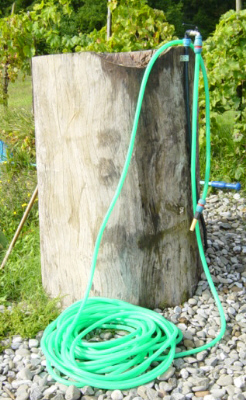 Statt einer Dusche am Pool gab es einen ewig langen Wasserschlauch mit dem
