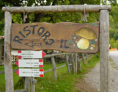 wir auf die etwas dürftige Beschilderung zur Hütte 'Rifugio E.Rossi'
