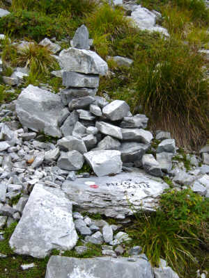 Wir drehten um und fanden dann ein Steinmännchen mit einer Richtungsangabe: